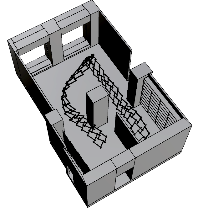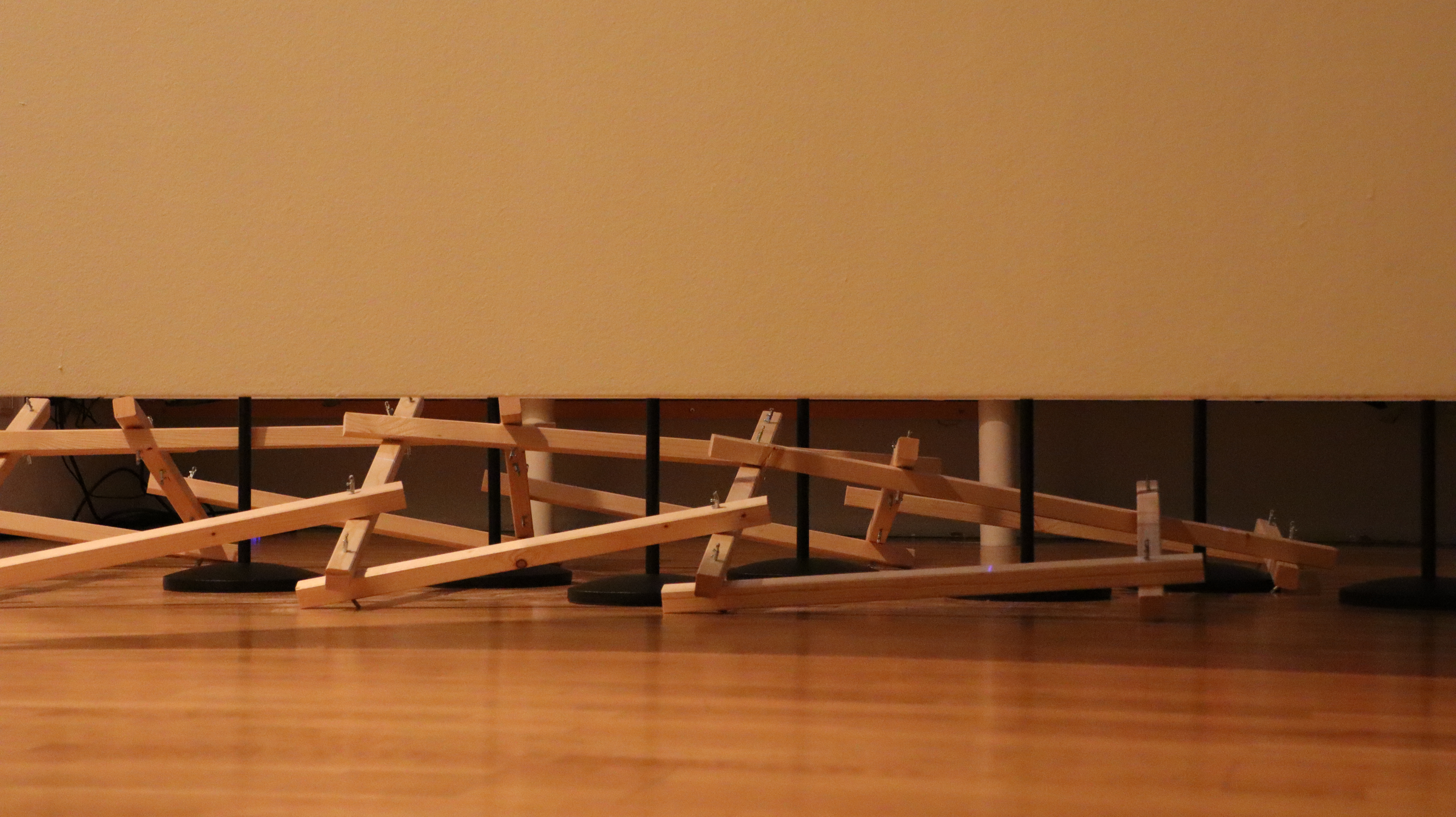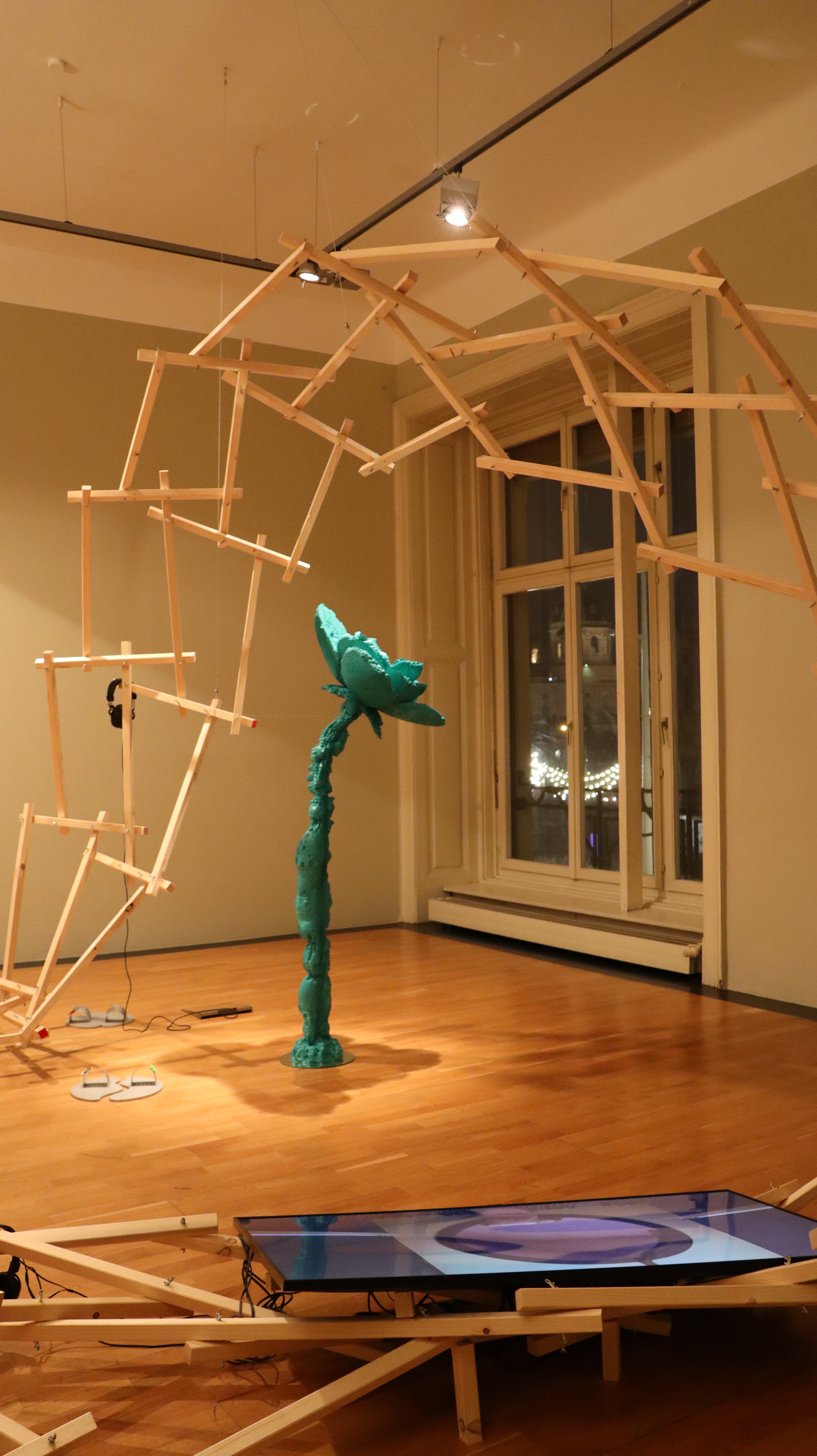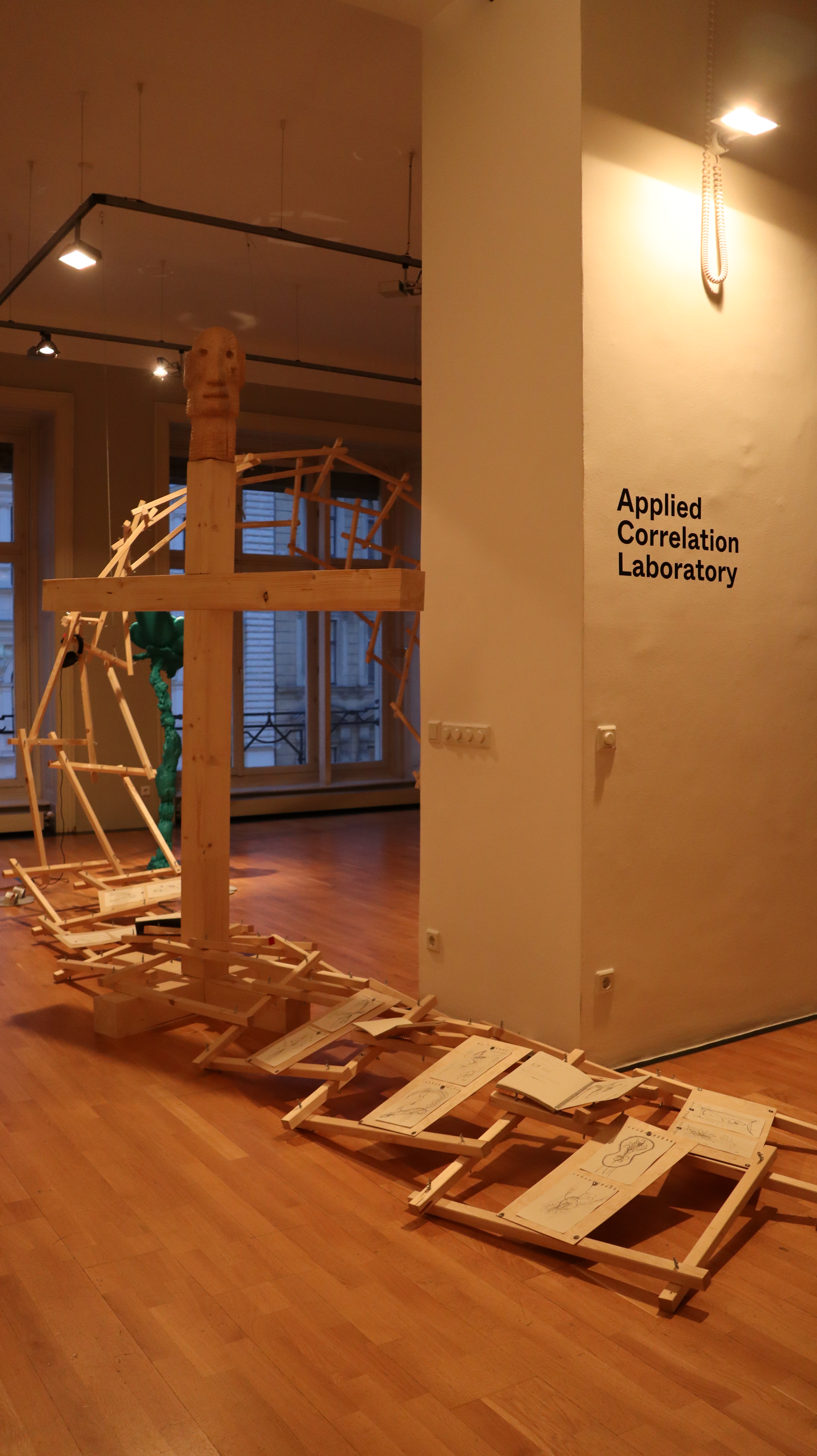 The exhibition display is a site-specific structure developed for the Applied Correlation Laboratory, a group exhibition at the Frederick Kiesler Foundation in Vienna. The exhibition display not only weaves the multiplicity of past into the future, but also connects the 10 exhibition pieces through its flexible structure.