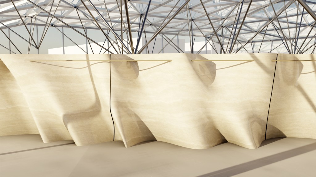 Stone is an element that is culturally constructed as valuable and precious. By using new technology on this historical material, it can express new aesthetics with the softness and craftsmanship of fabric.